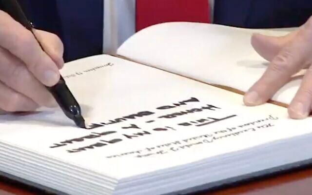 Kurz vor Beginn seiner Ansprache vor der Knesset hat sich der Präsident in das Ehrengästebuch des israelischen Parlaments eingetragen. Auf der ersten Seite seiner handschriftlichen Zeilen heißt es laut israelischen Medien: „Mit Liebe, mit Respekt und mit dem festen Glauben an Israels Zukunft.“ Anschließend wurde er von Knesset-Sprecher Amir Ohana empfangen, der ihn als „Freund des jüdischen Volkes in der schwierigsten Zeit seiner Generation“ würdigte.